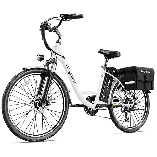 Heybike Cityscape Electric Bike 350W(Peak 500W) Electric City Cruiser Bicycle Up to 40 Miles 23MPH Removable Battery, 7-Speed and Dual Shock Absorber, 26″ Electric Commuter Bike for Adults