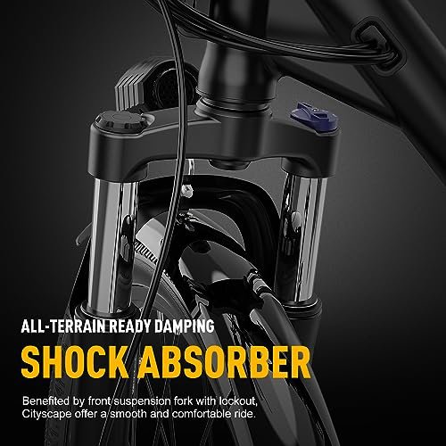 Heybike Cityscape Electric Bike 350W(Peak 500W) Electric City Cruiser Bicycle Up to 40 Miles Removable Battery, 7-Speed and Dual Shock Absorber, 26″ Electric Commuter Bike for Adults