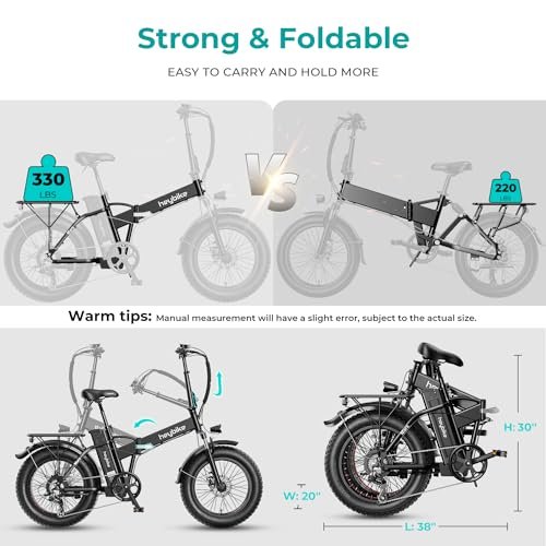 Heybike Mars Electric Bicycle Foldable 20″ x 4.0 Fat Tire Electric Bicycle with 1000W Peak Motor,624WH Removable Battery and 50 Miles Max Range, Dual Shock Absorber for Adults
