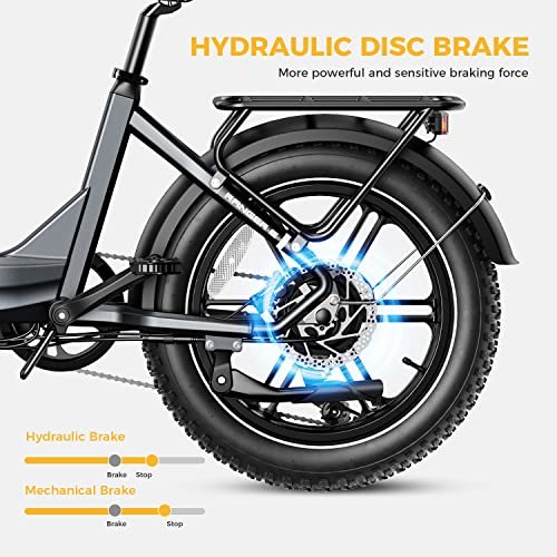 STRONG FRAME AND CARRYING MORE- Our e-bike is constructed with a high-strength aluminum alloy frame that is designed to keep your ebike secure and stable, providing a safe and reliable riding experience, The bike’s heavy-duty rear rack has a load capacity of up to incredible 150lb, making it easy to handle even the heaviest loads, allowing you to transport anything you need. Perfect for commuting, camping, or weekend adventures.