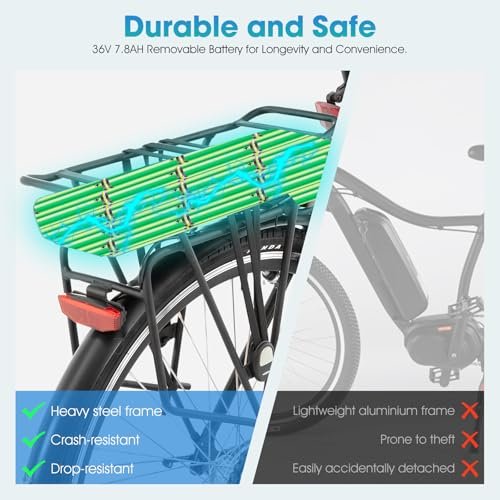 HILAND Electric Bike for Adults, Women’s and Men’s 700C 250W EBike with Throttle, 36V 7.8Ah Removable Battery, 20 MPH Commuter Cruiser Electric Bicycle, 7-Speed, Step Through