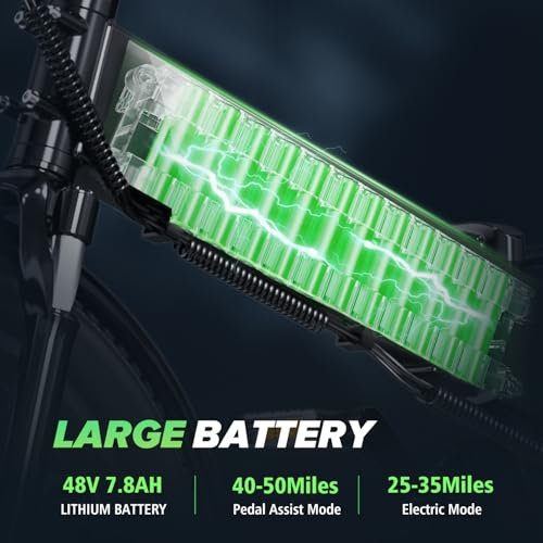 • Powerful Riding Performance:Conquer any terrain with ease with powerful 500W(Peak 800W) motor and robust 20″ fat tire. Experience exhilarating acceleration up to 20mph and enjoy a smooth ride on various surfaces, from city streets to off-road trails. Enjoy long-distance riding with the 48V 7.8Ah lithium-ion battery, allowing for up to 50 miles on pedal assist mode. Our commitment to safety has been recognized by SGS through certifications UL 2849 (for the whole e bike)