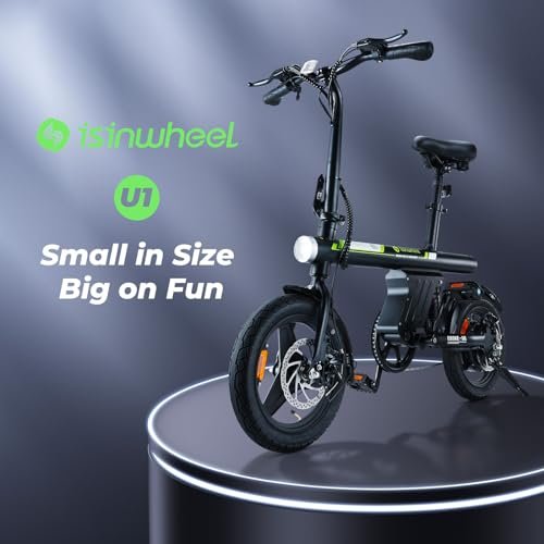 isinwheel W-U1 500W Folding Electric Bike for Adults, 25 Miles Long-Range Battery, Rear Suspension, 3 Assist Levels – 14″ Foldable eBike for Adults and Teens