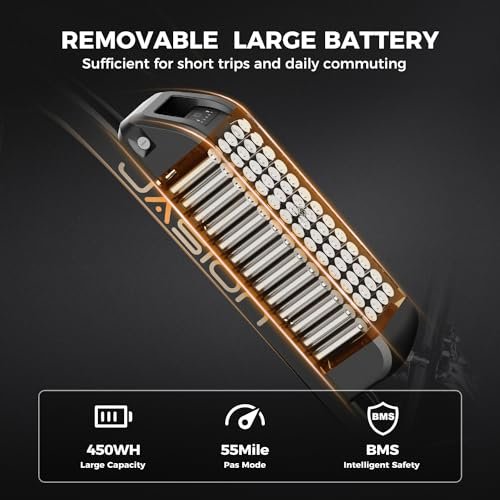Jasion EB-X 26″ Electric Bike for Adults, with Phone Holder, 850 W Peak Brushless Motor, 21 Speed Gear, 25 MPH Ebike, 450 Wh Removable Battery Electric Mountain Bike, Commuting E Bike, Fork Suspension