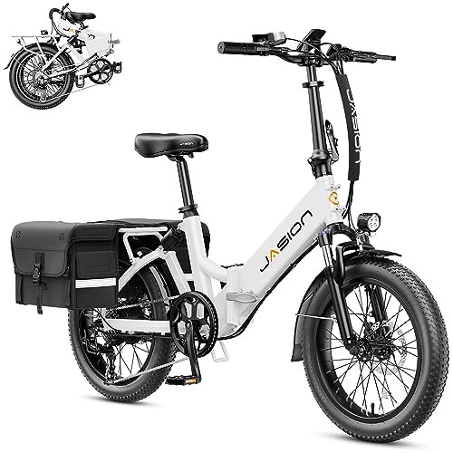 Jasion EB7 ST 2.0 Electric Bike for Adults, 850W Power Motor 55 Miles 28MPH Top Speed Folding Ebike, 48V 10AH Built-in Battery Dual Suspension, 20″ Fat Tire Electric Bicycles, Step-Thru Design