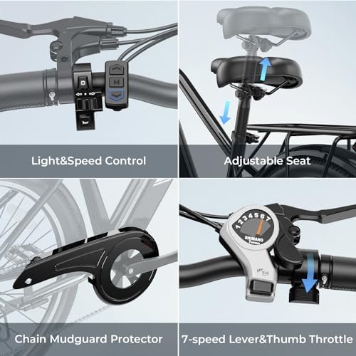 • Powerful Lighting Configuration. : – -The Roamer e bike is equipped with a powerful lighting system, including left and right turn signals, brake light, rear tail light, and front light. When a turn is needed, simply gently activate the turn signal button on the handlebars to let vehicles behind you know your turning intention, thereby safeguarding your commuting safety.