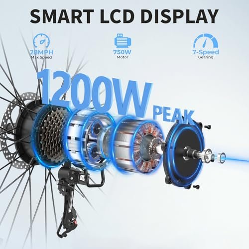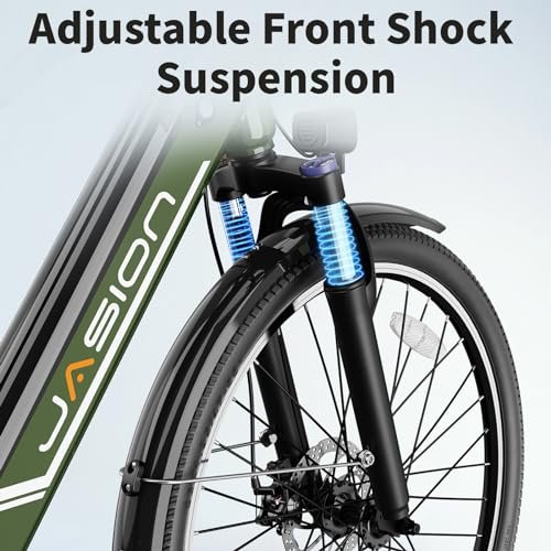 Jasion Roamer Electric Bike for Adults 1200W Peak Motor 528WH Removable Battery,up to 60miles 28MPH City Cruiser Ebike,26” Commuter E Bike, 7-Speed Gears and Front Suspension Bicycles