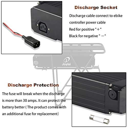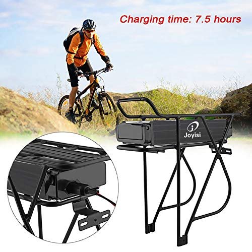 - Lightweight Design . : – Sturdy and stylish black case, which effectively protects the battery from damage. Solid metal rack is easy to install and fits 24″ 26″ and 28″ wheels. The power switch and the use of the rack are all on the safety lock, please use the key to realize these functions