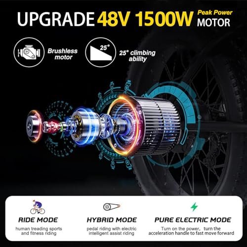 JOYWAY Electric Bike for Adults, 1500W Peak Power Electric Mountain Bike 4″ Fat Tire 32MPH 48V 20.8Ah Removable Battery Ebike 26″x4.0″ Fat Tire ebikes for Adults, Electric Fat Tire Bike (48V 20.8AH)