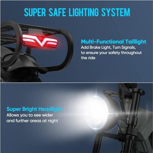 • [Upgraded Extra Safety Design ①2000 Lumens Ultra-Bright Dual-Mode Front Headlight, Illuminate your path with a powerful long-range beam reaching 18+ meters, ensuring optimal day and night visibility.②Tail light with brake light & turn signal alerting vehicles behind you for maximum cycling safety. Every detail is crafted to safeguard your all-day ride!
