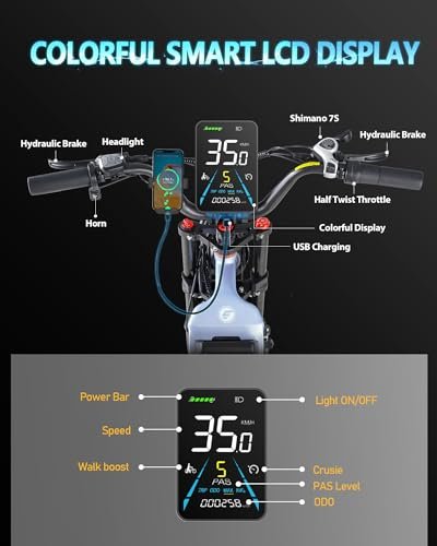 ⚡Upgraded peak 1200W brushless motor, a symbol of power. : – ①Juliet adult electric bicycle is equipped with an upgraded 1000W (peak 1200W) powerful motor, which can provide powerful drive and speed. The maximum speed can reach 28-31MPH, and the maximum torque of 120 N.m can easily conquer the 35-40 slope! ③48V 25A integrated controller achieves more sensitive control. Experience a thrilling blend of power and speed.