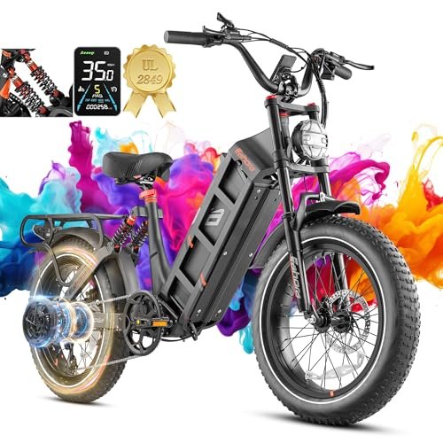 Smooth riding experience . : – ① Reinforced double shoulder front fork provides 80-120mm for more stability and comfort; ② FASTACE adjustable rear shock absorber – ensures you experience excellent suspension performance during riding. ③ Front and rear hydraulic disc brakes for smoother braking! ④20″ fat tires, anti-skid and wear-resistant, no matter you ride on mountain roads, snow roads, or rough roads, you can ride safely, smoothly, comfortably, and enjoy the fun of riding!