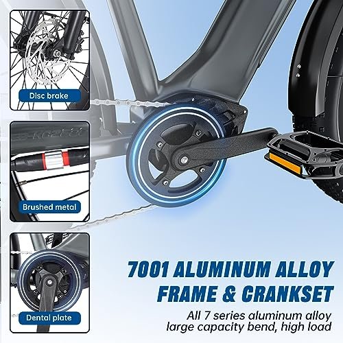 [VERSATILE RIDING EXPERIENCE WITH 7-SPEED SHIMANO SYSTEM AND 3 RIDING MODES Enjoy the convenience of a 7-Speed Shimano system, providing smooth and precise gear shifts for various terrains. Combined with 3 riding modes (Pedal-Assist, Electric-only, and Manual), our EBike offers a versatile riding experience, empowering you to effortlessly conquer hills, extend battery life, or enjoy a traditional bike ride as per your preference.
