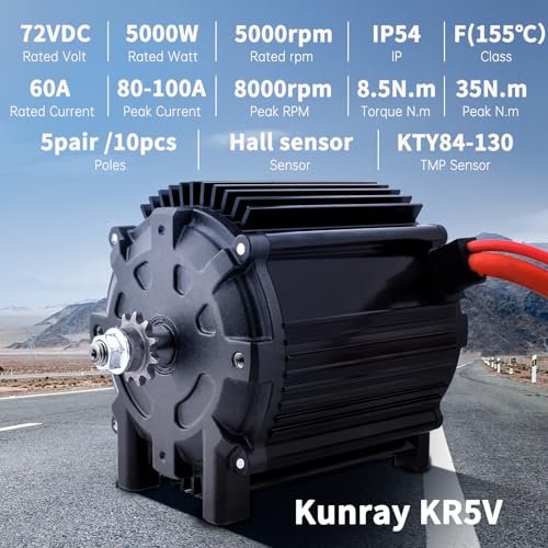 Upgrade Electric DC Motor Basic Parameters. : – . : – 72V 5000W BLDC Brushless Motor,providing 8.5N.m of torque.Peak Torque. : – 35N.m. rated speed 5000rpm, maximum speed 8000rmb(no-load speed), current 60A(Max80~100A), small size, aluminum body, all copper wire motor. The motor has a temperature sensing function,which can effectively control the motor overheating and prevent the motor damage. The motor kit is made of Class F insulation (155 °C) with an IP54 rating to prevent the entry of dust. Even if the motor is used in a muddy place, it can be used without worrying about the normal use of the motor and will not damage the motor.