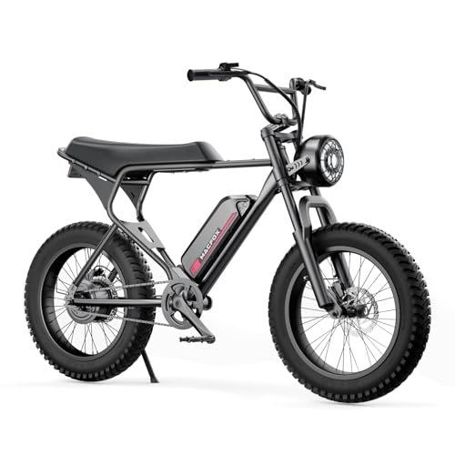 MACFOX Upgrade X1S Electric Bike, Ebike 500W/48V/10.4Ah, 20″ Fat Tire Electric Bicycles Up to 20MPH & 40 Miles with Retro Motorcycle Design, Removable Battery, 50N.m Max Torque