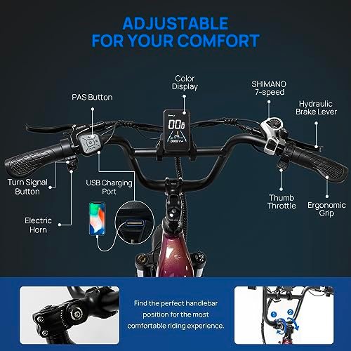 • THOUGHTFUL DETAILS. : – . : – LCD VA color display with IP65 waterproof rating covering the basics information like battery bars, speed, odometer, trip distance, output watts, and biking mode etc.(with USB charging port ) 1.89″x 1.89″ Big button make it easy for new riders to get up and running. 5 Electric levels can be selected. (Changeable maximum and minimum speed to better meet your needs) Using electric horn and turn signal reminder to alert other pedestrians.