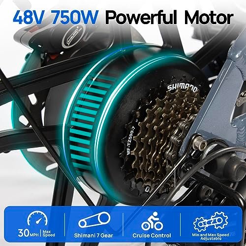 • POWERFUL MOTOR. : – . : – The 750W high-speed power motor will help you reach 30mph with ease. 85N·M torque makes it more adaptable to terrain. (conquer 30° inclines)Let your footsteps not only be stay in the city. Even on rainy days, the front and rear 180 mm hydraulic disc brakes show their extraodinary brake ability. (When braking, the drive power will be cut off to improve safety). Strong power and braking capabilities make you feel more free and safer while riding.