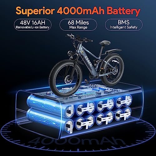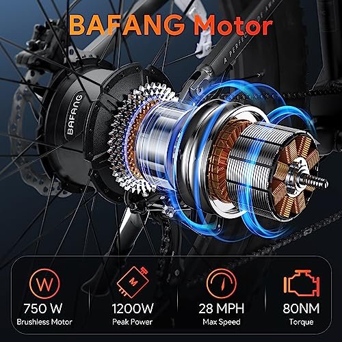 Osoeri 26″ x 4″ Fat Tire Electric Bike for Adults, 750W BAFANG Motor 48V 16Ah Battery Ebikes, Hydraulic Disc Brakes Dual Shock Absorber 28Mph Shimano 7-Speed Mountain Electric Bicycle