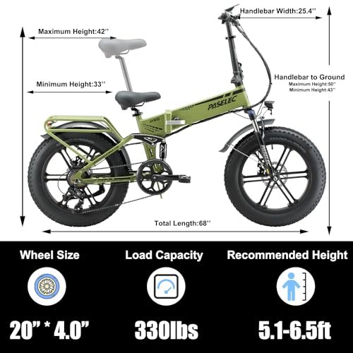 Be the first to review “PASELEC Electric Bikes for Adults Folding Electric Bicycle 750W Motor Ebike 20”*4.0” Fat Tire Mountain e-Bike with 48V 12Ah Removable Battery,7 Gears Foldable E Bike for Adults (Dark Green)”