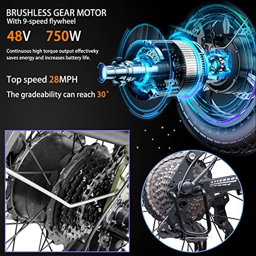 • Powerful 750W Motor:Up to 750W motors provide enough power and reduce your energy consumption while you’re ridding. Allows you to navigate snow, beach, mountains and other terrain with ease. With speeds up to 28-30 mph,it will get you there swiftly.Bicicleta eléctrica para anuncios, tu buen amigo.