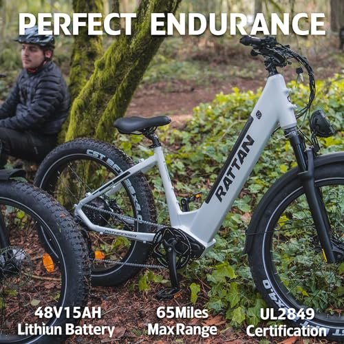 Rattan Pathfinder Electric Bike for Adults,28MPH 65Miles Ebike,Peak 1500W Motor Electric Mountain Bike with 48V 15AH Removable Battery,26 * 4 Fat Tires Ebike for Adults,7-Speed