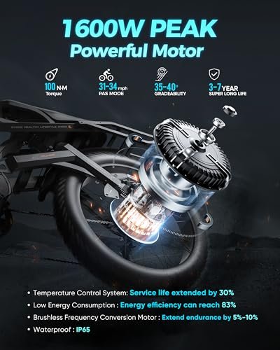 ⚡⚡Upgraded Peak 1600W Powerful Motor⚡⚡: eAhora romeo pro electric bike equipped with upgraded 1200W(Peak 1600W) powerful motor and 90-120 N.m torque, providing powerful driving and speed, reaching Max Speed 30-34Mph in seconds! Easy to climb 35-40 degree slope! Multiple operating modes allow for an excellent riding experience on snow, beach, mountain, and city roads.