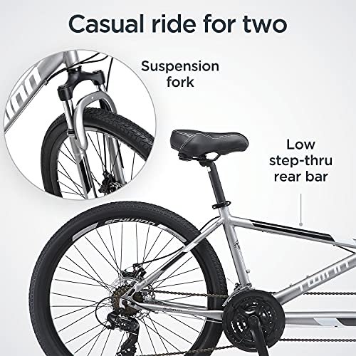 Schwinn Twinn Classic Tandem Adult Beach Cruiser Bike, Double Seater, Low Step Medium Or Large Frames, 7 or 21-Speed, 650c Urban Tires, Alloy Caliper Brakes