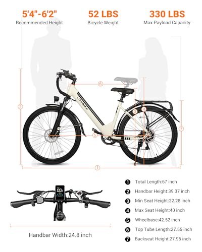 Seeker S Electric Bike for Adults 350W(Peak 540W) 26 inch Electric Bicycle Step Thru Ebike, with 36V/9Ah Battery, 20MPH, 7-Speed Gears and Front Suspension, UL 2849 Certified E-Bikes