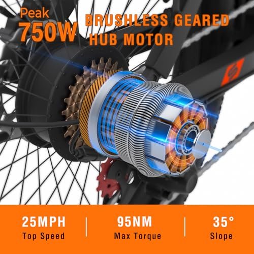 POWERFUL BRUSHLESS MOTOR: The folding electric bike for adults is equipped with a high-quality (peak) 750w brushless motor that provides strong power output. The top speed of electric bicycle can reach 25mph, maximum slope of 15°, allow you to ride easily on snow, mountain, beach and urban roads.