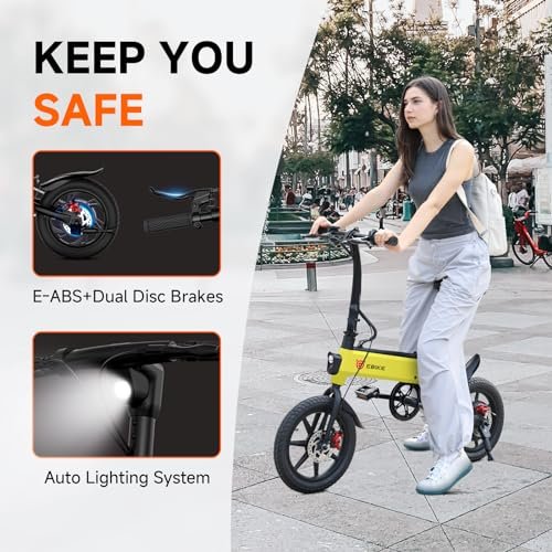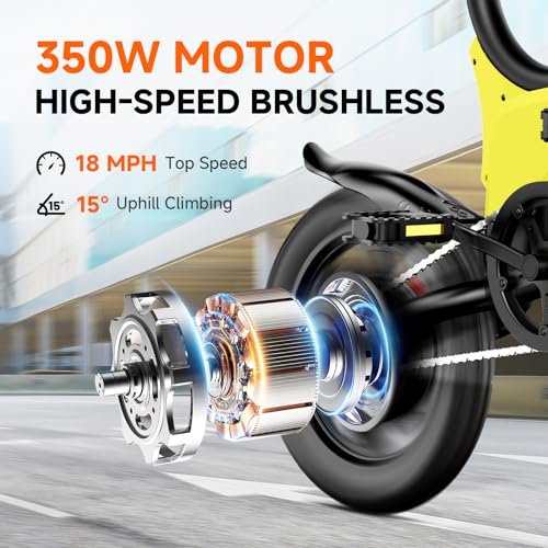 SISIGAD Folding Electric Bike, 350W Motor, 36V 7.8AH Battery, 16 Miles Range, Front & Rear Disc Brakes, 18 MPH Max Speed, Lightweight eBike with Display for Adults