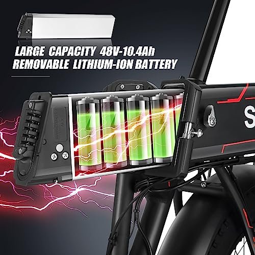 Speedrid 500W Folding Electric Bike for Adults, 20″ x 4.0″ Fat Tire Ebike with Mid Located Built-in 48V-10.4Ah Battery Up to 50 Miles, Front Suspension Fork and 7 Speed