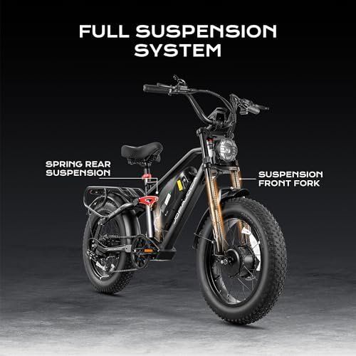 Terra II Peak 2000W Dual Motor Electric Bike for Adults, 7-Speed 33MPH 48V 20Ah E Bike, 20 * 4.0 Puncture Proof Fat Tires Hydraulic Brake Full Suspension Electric Bike, with UBS Wharging Port