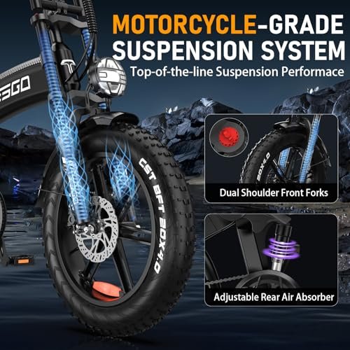 Be the first to review “TESGO 1000W (1500W Peak) Moped Style Foldable Electric Bike,【LG Battery】 48V 16.8AH E Bike for Adults,【Full Suspension】 Double Shoulder Forks & Rear Air Shock,Dual Hydraulic, 20″ Fat Tire EBike” Cancel reply