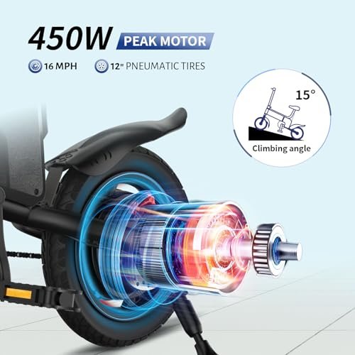 TST Electric Bike for Adults, 12″ Folding Electric Bicycle, Max Speed 16MPH Mini Bike, 450W Peak Motor, Max 15 Miles Range, Ebike with Disc Brakes, Pedal-Assist, UL2849 Certification