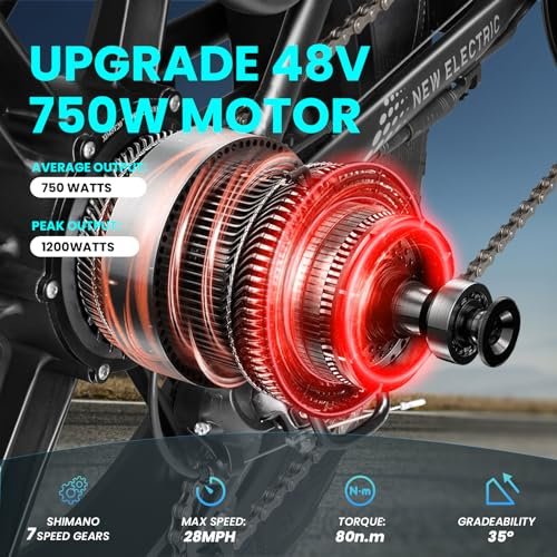 V3 Electric Bike for Adults, Folding Fat Tire Ebike 750W 20” x 4.0″ 28MPH E-Bike 48V 13AH Electric Bicycle Shi-Mano 7-Speed