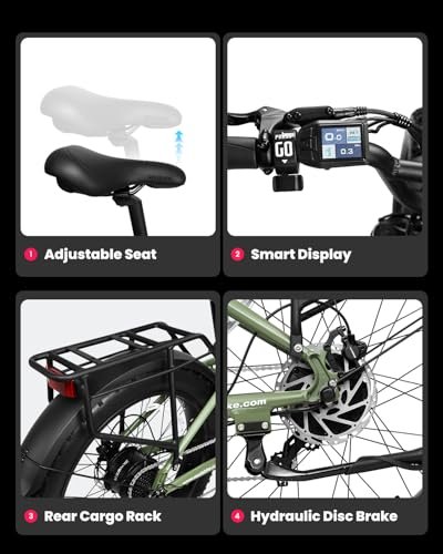 Powerful Motor & 3 Riding Modes – This step-thru electric bike is equipped with a powerful 750W (Peak 1000W) rear motor, capable of reaching a maximum speed of 28MPH with pedal assist and 20MPH with throttle. It offers 3 riding modes: pure electric, pedal assist, and classic bike. You can choose the mode that best suits your needs. Large Battery – The 48V 13Ah internal lithium-ion battery provides a range of up to 32+ miles per charge with throttle. The removable battery design makes charging more convenient. Kenda 26″ x 4.0″ Fat Tire – This mountain electric bike features a Kenda 26″ x 4.0″ fat tire, enabling it to traverse various terrains, including mountains, snow, beaches, and urban areas. 7-Speed Gears – The professional 7-speed gearing system satisfies all speed requirements for any terrain, offering precision and sensitivity. Dual Hydraulic Disc Brakes & Hydraulic Suspension – The dual hydraulic disc brake system allows the e-bike to stop quickly and smoothly even at high speeds. The lockable hydraulic suspension fork effectively absorbs shocks, making it easy to control on off-road or rough terrain.