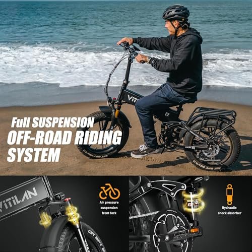 VITILAN i7 Pro Electric Bike Adults Folding 750W BA-FANG/E-iwol Motor Fat Tire Ebike Removable 16AH/20AH Cell Battery Full Suspension Electric Bicycle 8-Speed