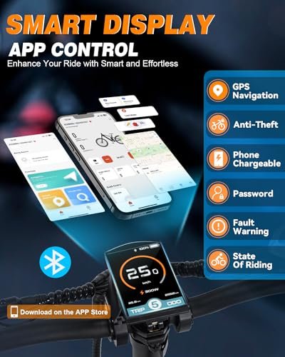 • High-tech System::This electric bike for adults has a full-color smart screen with a USB port, which can be connected to mobile APP control, GPS navigation, anti-theft. The phone is rechargeable. This full-color screen helps easily monitor speed, battery level, and other information for a smarter riding experience.