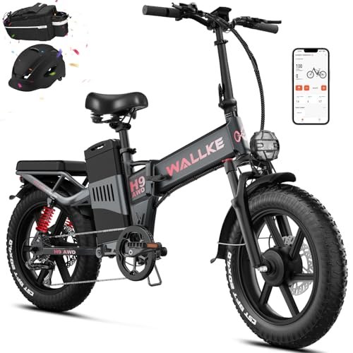 W Wallke Folding Electric Bike for Adults, 2000W Dual Motor, 48V 40Ah/60Ah Long Range Ebike, 20 inch Fat Tire Electric Bicycles for Delivery/Full Suspension/34MPH/AWD E-bike