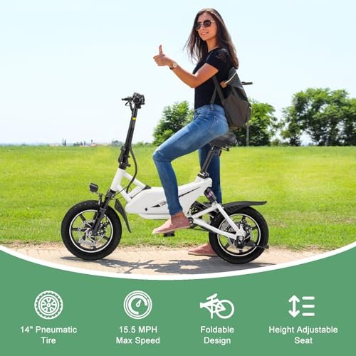 Winado 14″ Electric Bike for Adults, Folding Electric Bicycle 350W Motor with Pedal, Dual Shock Absorber, Dual Disc Brakes, Max Range 20Miles, Foldable Commuter City Ebike for Adults/Teens, White