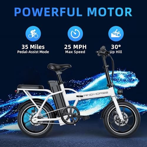 WINDHORSE Peak 630W Foldable Electric Bike for Adults, 25MPH Speed, Max 35-Mile Range, Folding Ebike with Removable Battery, 16″ Tires, Dual Seats