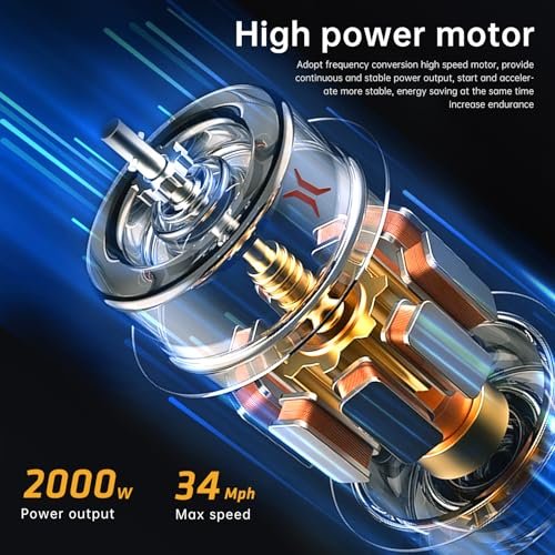 A: The powerful 2000-watt motor helps you reach a top speed of 30 miles per hour.